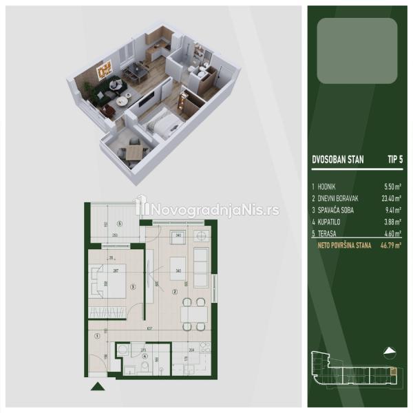Čair, 46.79m2, dvosoban stan u novogradnji