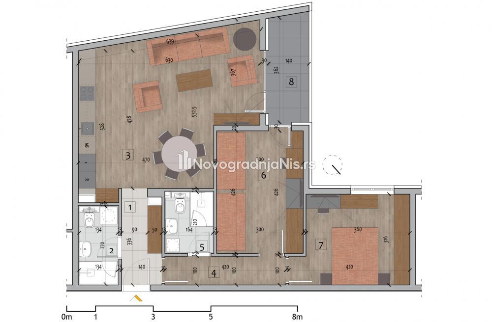 Narodno pozorište, 76.23m2, trosoban stan u novogradnji