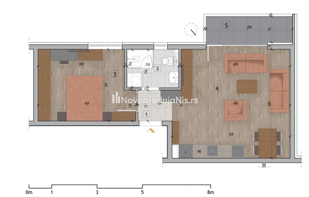 Narodno pozorište, 46.90m2, dvosoban stan u novogradnji