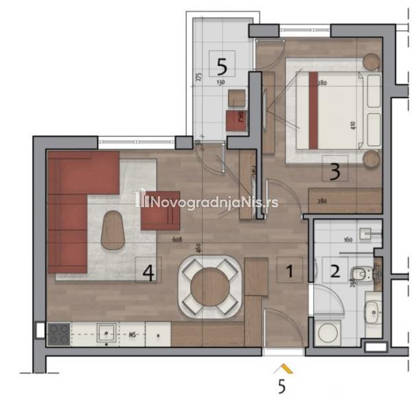 Pantelej, 44.50m2, jednoiposoban stan u novogradnji