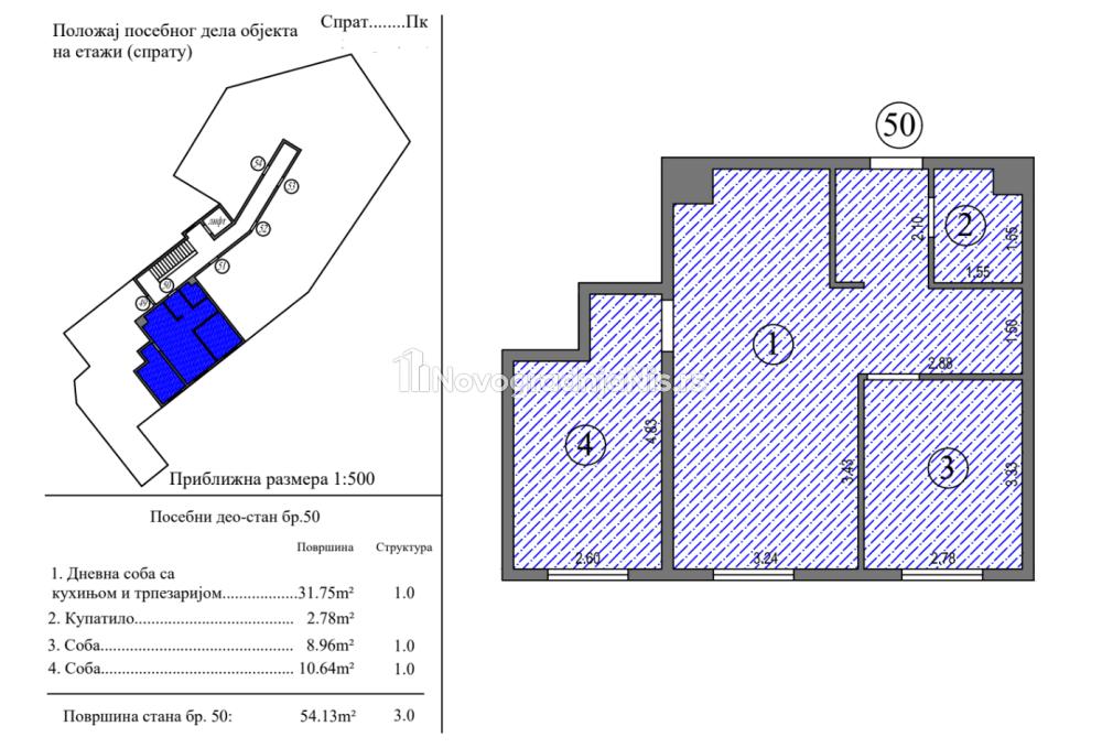Niš centar, 54.13m2, dvoiposoban stan u novogradnji