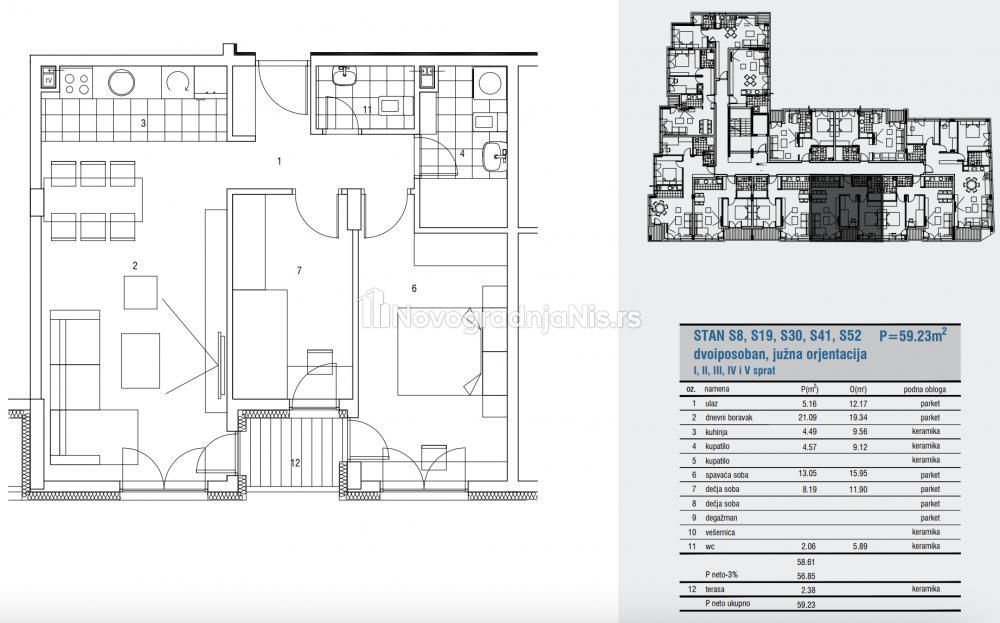 Niš centar, 59.23m2, dvoiposoban stan u novogradnji