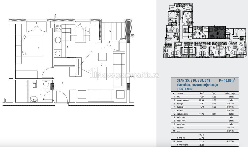 Niš centar, 46.89m2, dvosoban stan u novogradnji