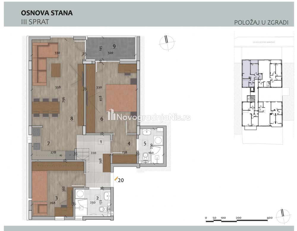 Čair, 67.32m2, trosoban stan u novogradnji