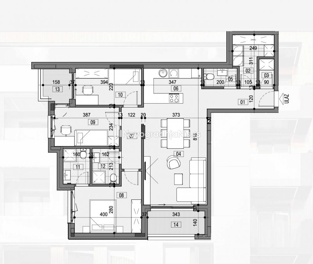 Niš centar, 93.97m2, četvorosoban stan u novogradnji