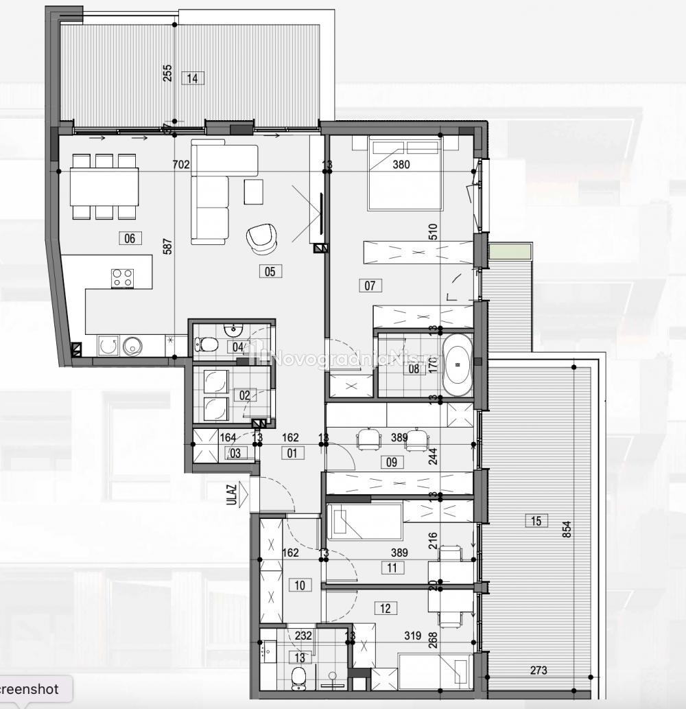 Niš centar, 153.33m2, četvorosoban stan u novogradnji