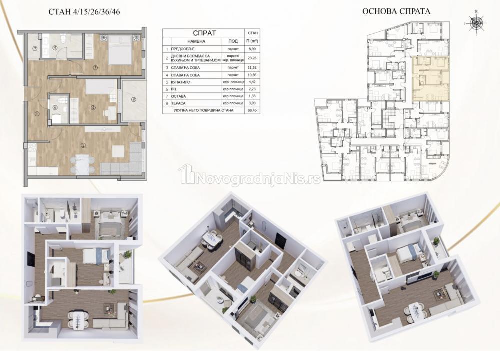 Pantelej, 66.45m2, dvoiposoban stan u novogradnji