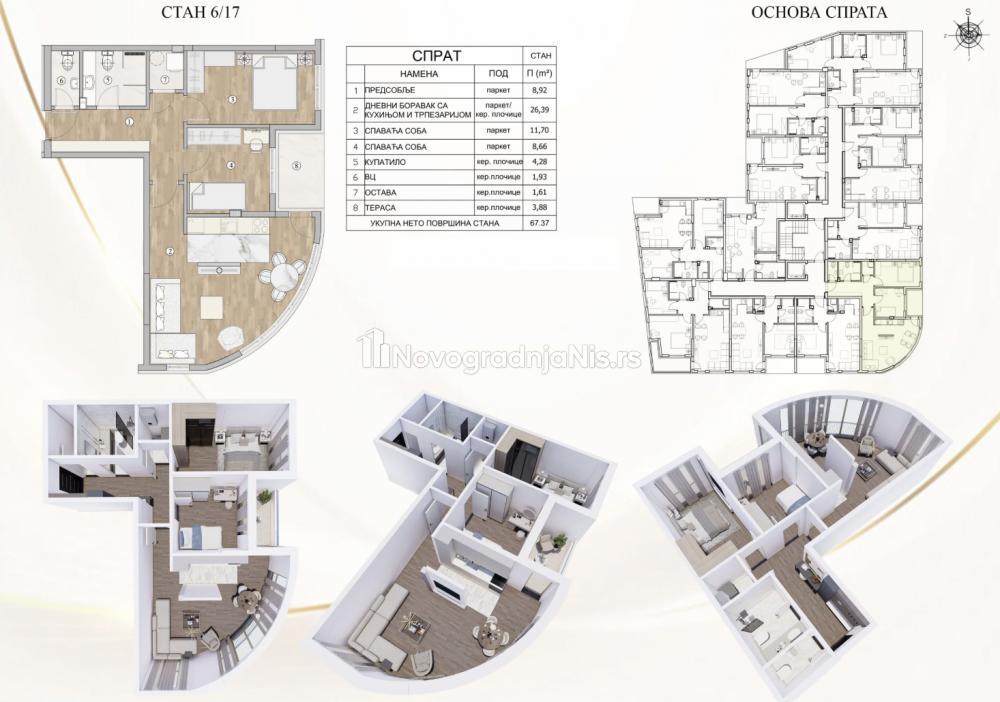 Pantelej, 67.37m2, dvoiposoban stan u novogradnji