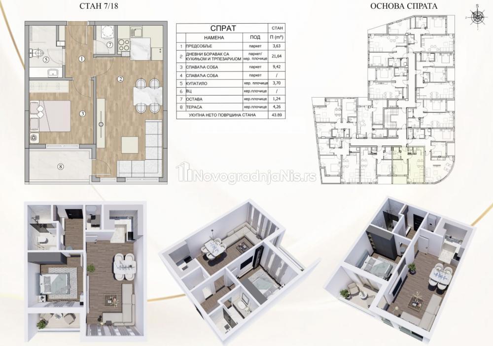 Pantelej, 43.89m2, jednoiposoban stan u novogradnji