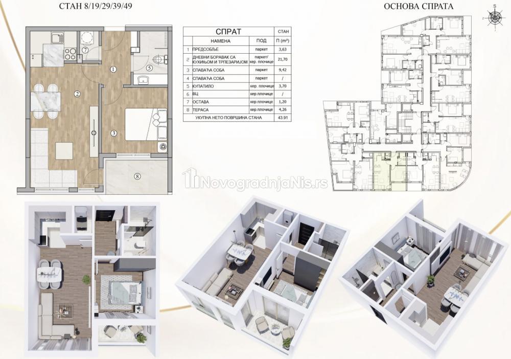 Pantelej, 43.91m2, jednoiposoban stan u novogradnji