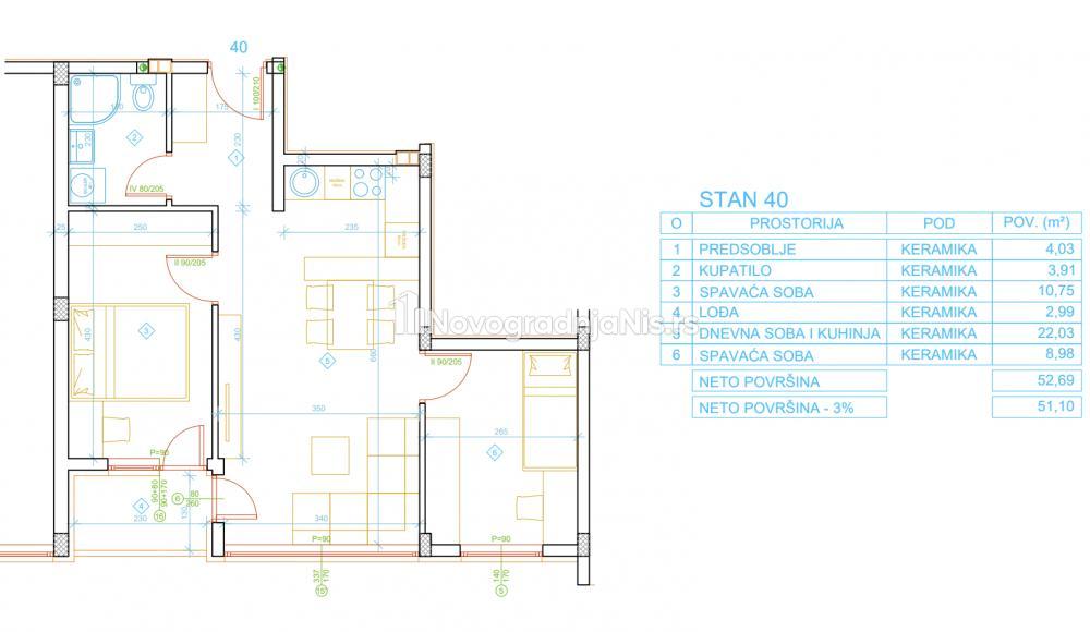 Palilula Niš, 51.10m2, dvoiposoban stan u novogradnji