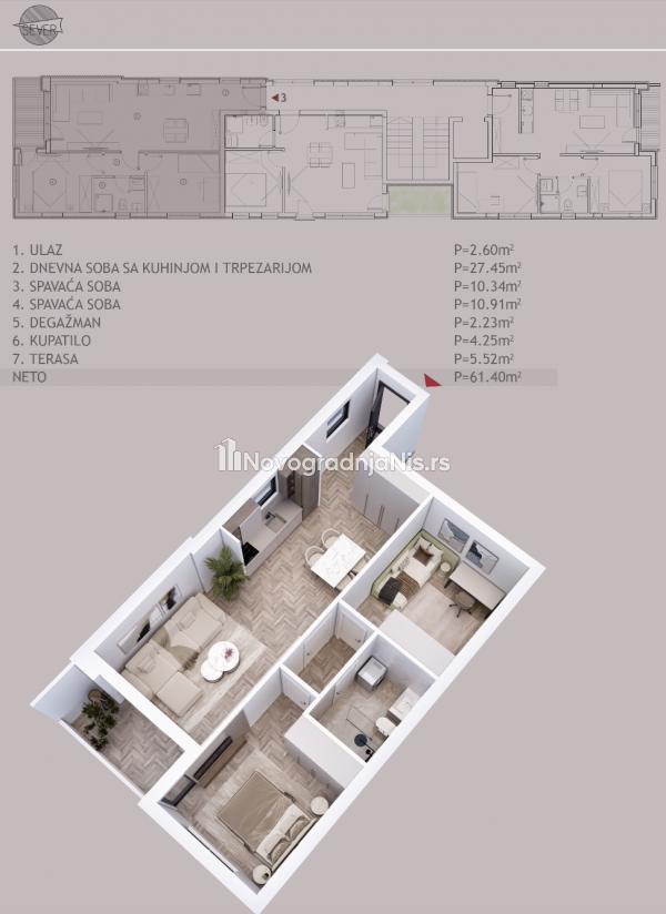 Bubanj, 61.40m2, dvoiposoban stan u novogradnji